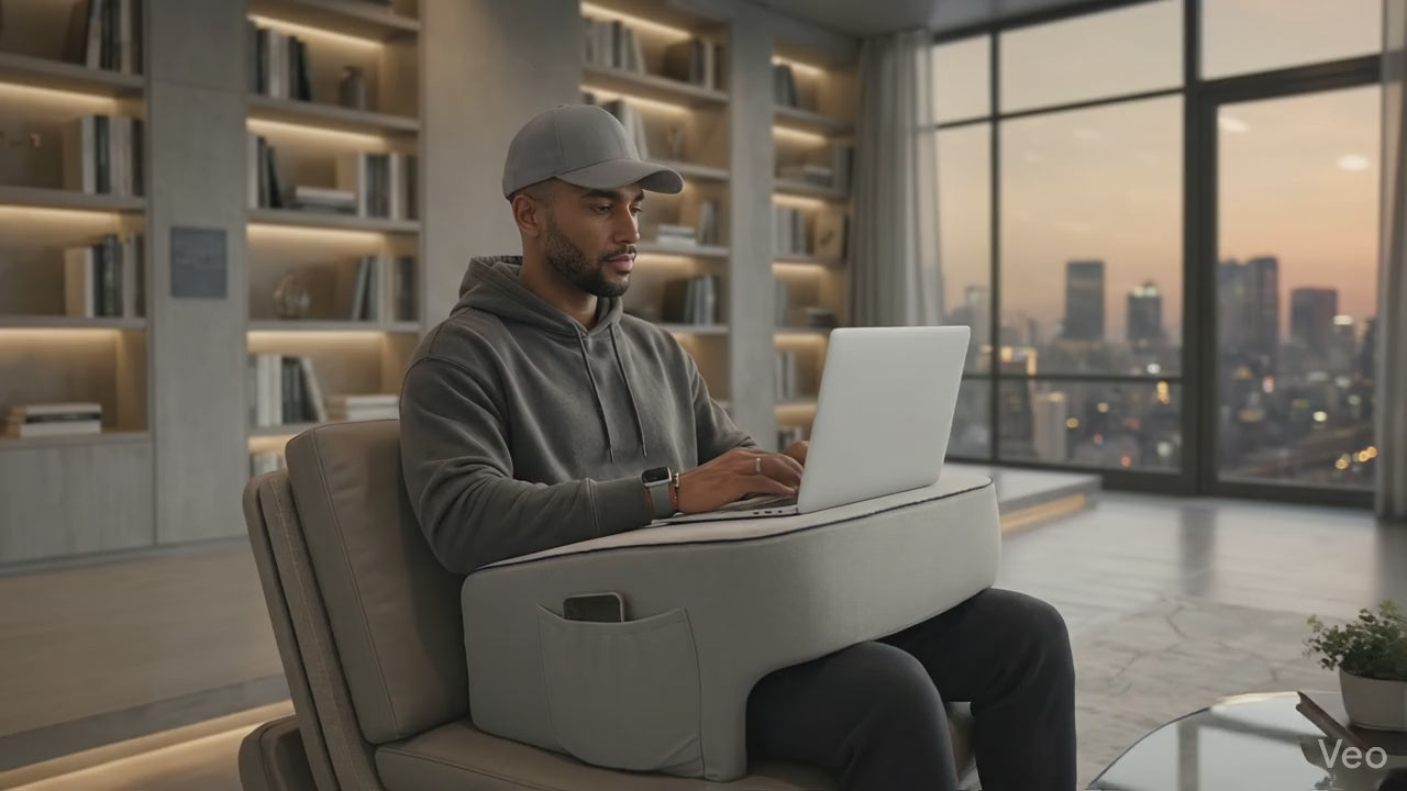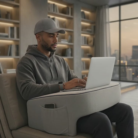 Our mission is to end the epidemic of 'Tech Neck' and back pain by bridging the gap between cosy living and home office ergonomics.